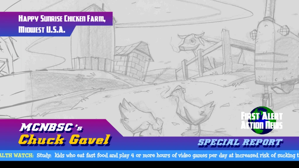 - Two unused cutscenes were intended to be unlocked after completing the level. These cutscenes were found in the game's movies folders. The name of the two cutscenes are "bonus_chickenfarm_intro/outro" and features Featuring a news reporter, and Windboy; a removed character.